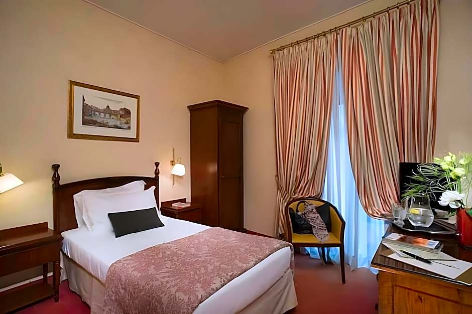 Classic Single Montecitorio View is 108 square feet and includes a single bed 80-130 width plus hairdryer.