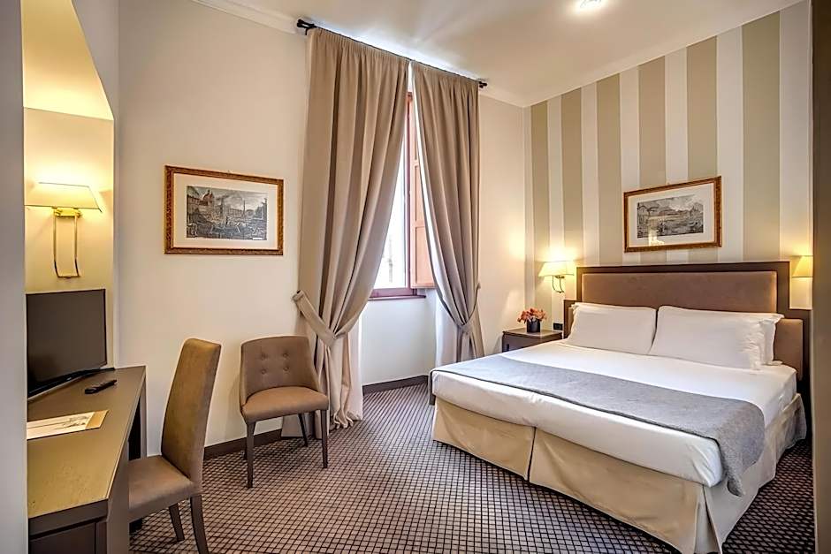Superior Double Montecitorio View is 172 square feet and includes a queen-size bed 150-154 width plus hairdryer.